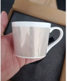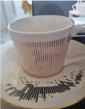 Ja, der anamorphe Effekt erscheint, sobald die Tasse abgestellt wird, unabhängig von der Flüssigkeit.
