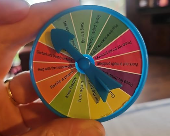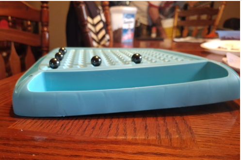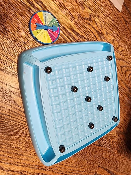 I giocatori spostano le biglie senza farle cadere, seguendo le istruzioni della ruota delle sfide.