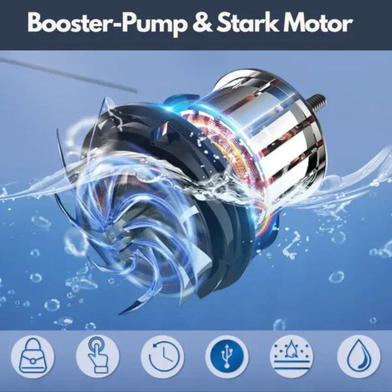 このポータブルシャワーは充電式バッテリーを搭載しており、充電後は電気なしで動作します。